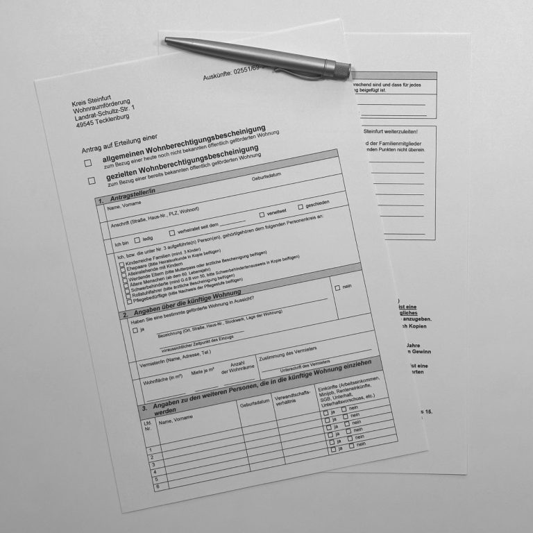 In den untenstehenden Tabellen können Sie prüfen, ob Sie für einen Wohnberechtigungsschein infrage kommen. Die Tabellen stellen keinen Rechtsanspruch dar. Ihr Anspruch kann nur durch einen schriftlichen Antrag beim zuständigen Wohnungsamt der Gemeinde Ladbergen gestellt werden. In der Regel ist dies der Kreis Steinfurt.